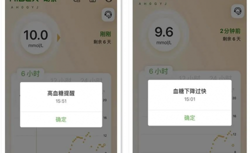 當(dāng)我們的血糖上升或下降過快,系統(tǒng)都會給予使用者提醒。14天內(nèi)隨時隨地拿起手機(jī)/手表就能看到實(shí)時血糖及變化趨勢。
