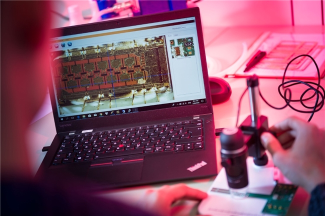 圖(二)帶有定制化集成電路和量子傳感器的測試PCB