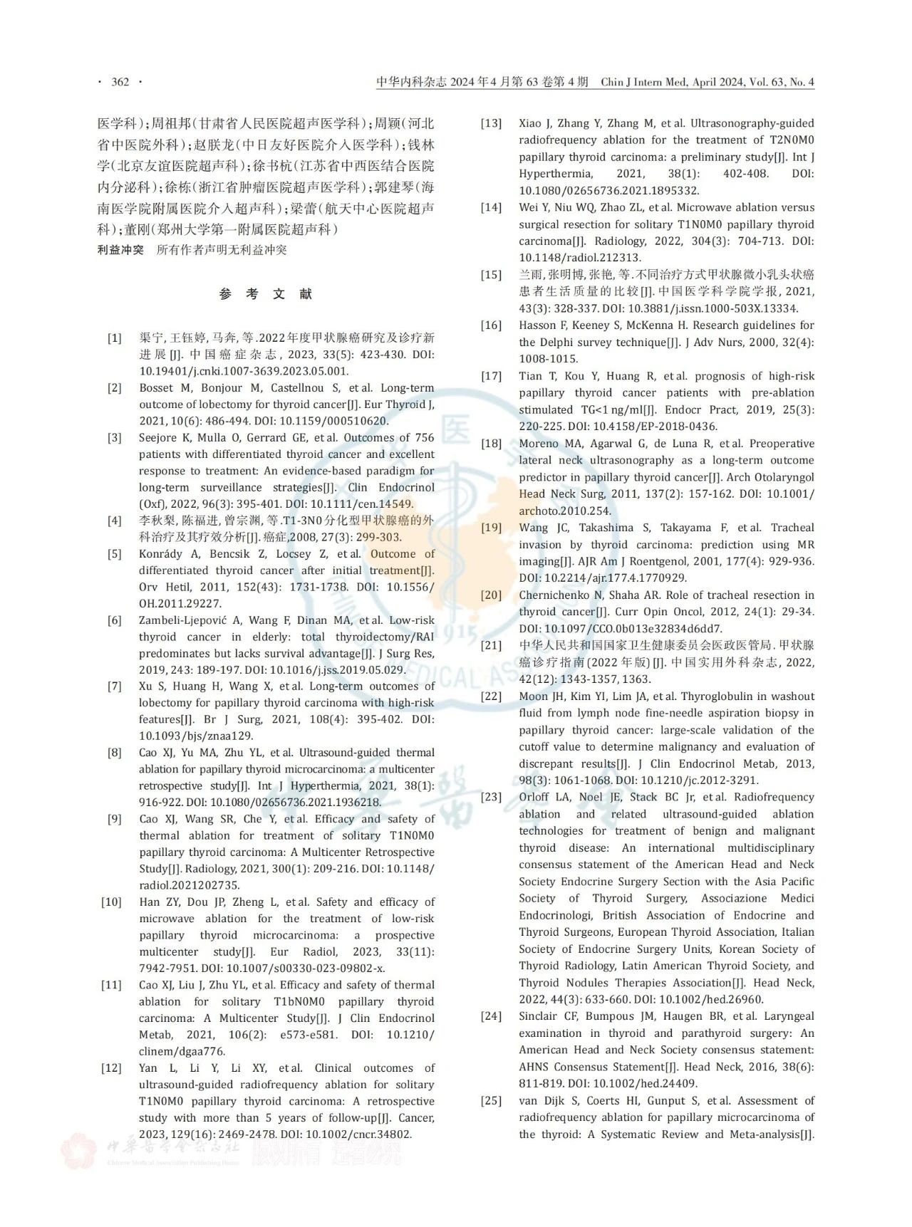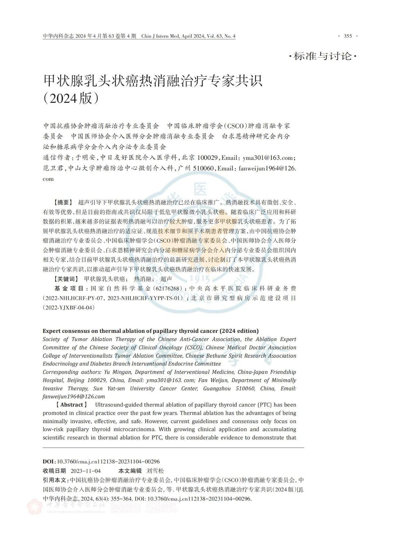 文章源自中國抗癌協(xié)會腫瘤消融治療專業(yè)委員會,中國臨床腫瘤學(xué)會(CSCO)腫瘤消融專家委員會,中國醫(yī)師協(xié)會介入醫(yī)師分會腫瘤消融專業(yè)委員會,等. 甲狀腺乳頭狀癌熱消融治療專家共識(2024版). 中華內(nèi)科雜志,2024,63(04):355-364. DOI:10.3760/cma.j.cn112138-20231104-00296