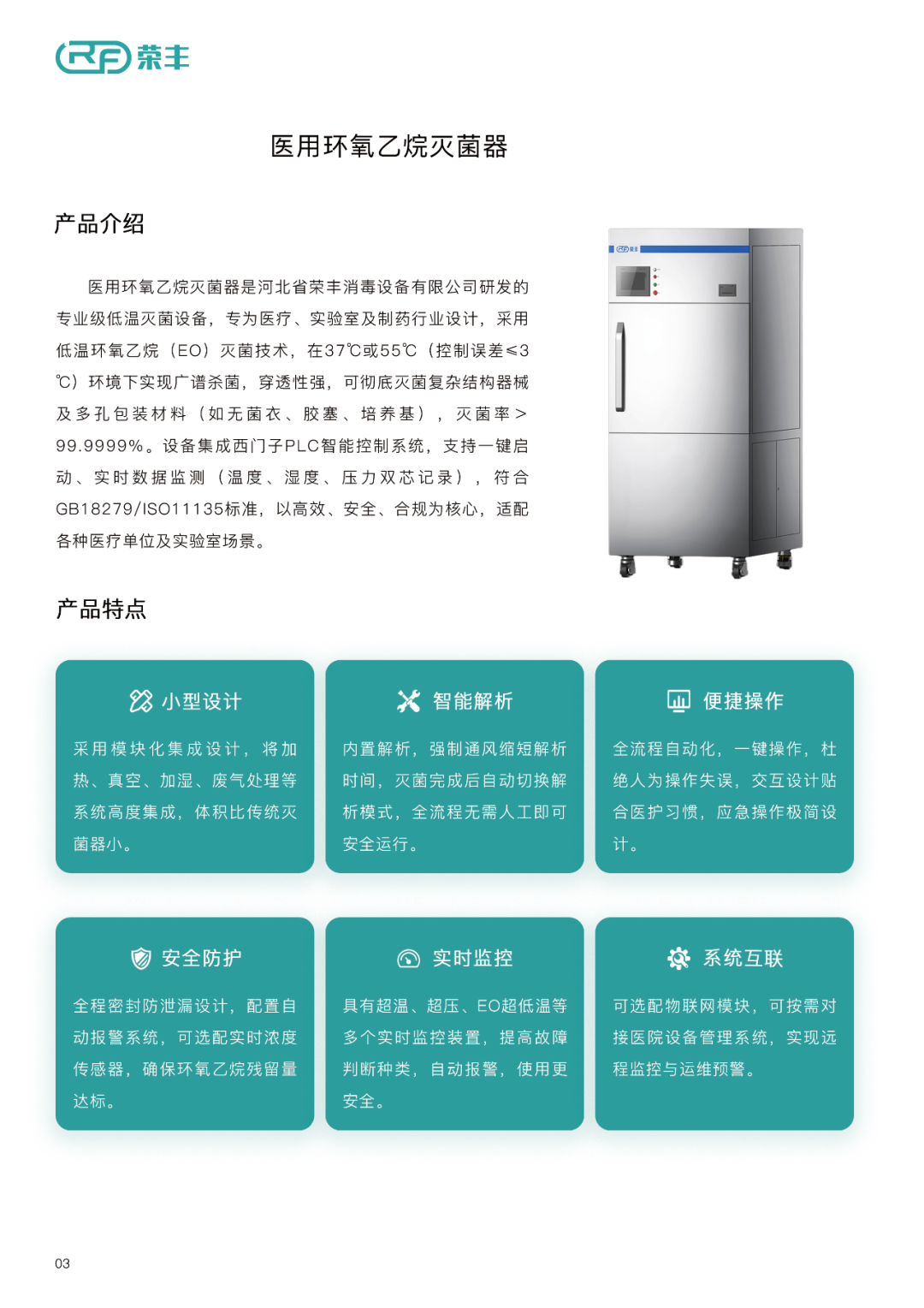作為全國消毒技術(shù)與設(shè)備協(xié)會委員單位、醫(yī)療器械行業(yè)協(xié)會理事單位以及行業(yè)標(biāo)準(zhǔn)制訂的起草單位,河北榮豐始終堅(jiān)守在消毒滅菌設(shè)備研發(fā)、生產(chǎn)與銷售的第一線。公司自主研發(fā)生產(chǎn)的環(huán)氧乙烷滅菌器、高壓蒸汽滅菌器、低溫蒸汽甲醛滅菌器等產(chǎn)品,廣泛應(yīng)用于醫(yī)療器械、輔料耗材、中藥材、文物檔案、橡塑制品、日用品等多個(gè)領(lǐng)域的消毒滅菌工作,為保障產(chǎn)品質(zhì)量與安全發(fā)揮著關(guān)鍵作用。