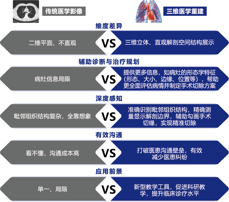 《人工智能一體化三維重建應(yīng)用于胸外科的中國(guó)專家共識(shí)》提出:三維可視化重建技術(shù)在日常胸外科的臨床工作中逐漸普及,AI和三維重建技術(shù)的融合將為胸外科各類疾病的術(shù)前精準(zhǔn)診斷、術(shù)中精準(zhǔn)定位、術(shù)后快速康復(fù)以及最佳獲益做出更大的貢獻(xiàn)。
