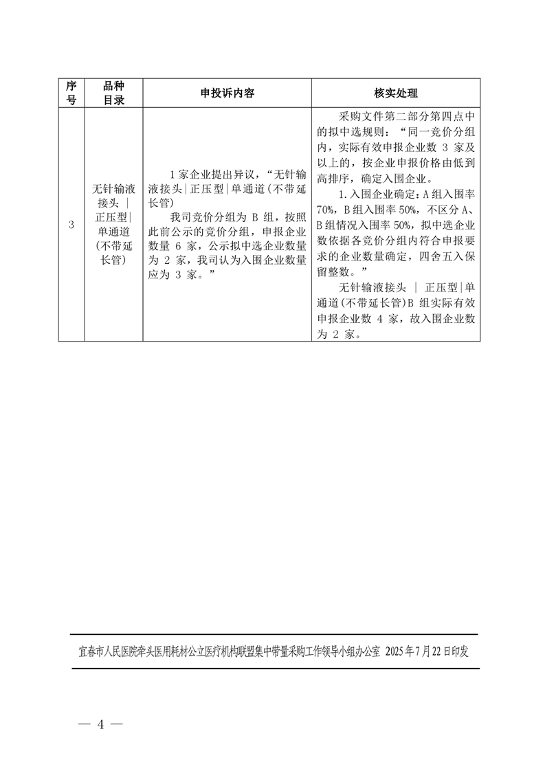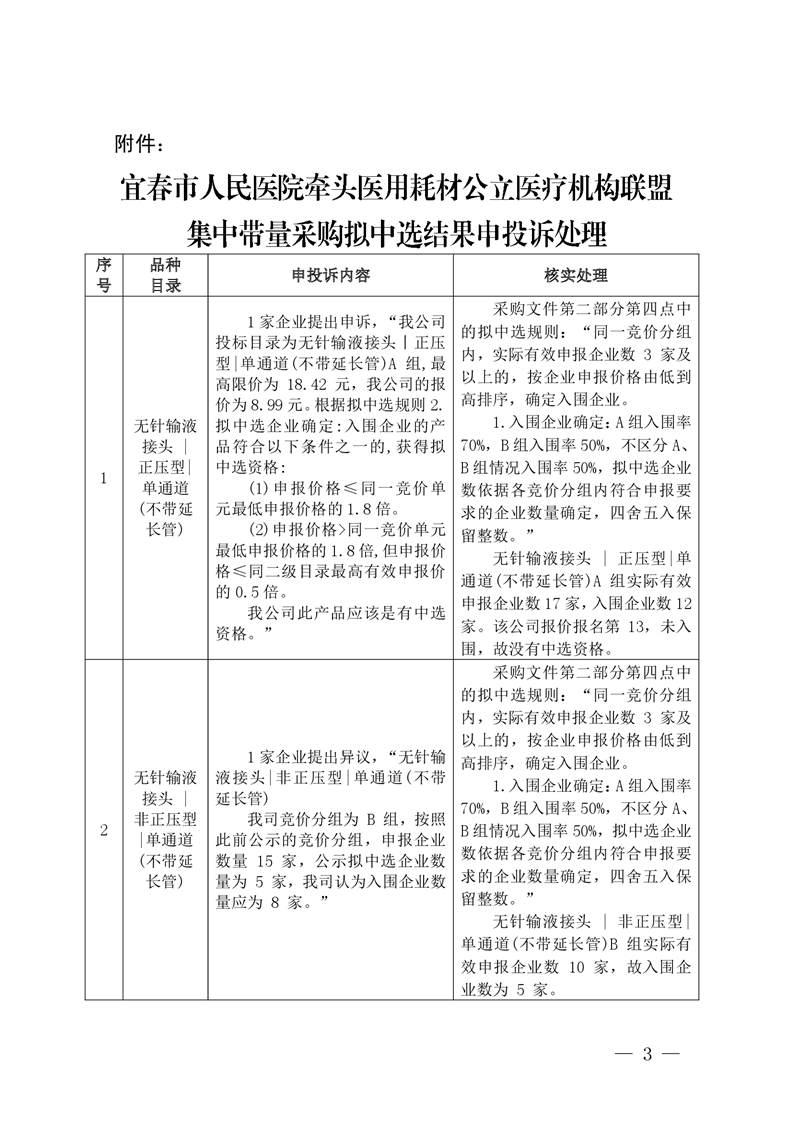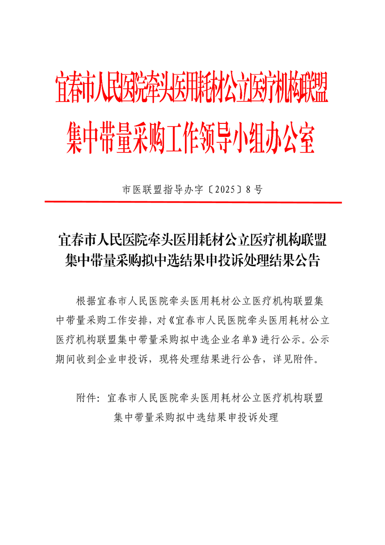 宜春市人民醫(yī)院牽頭醫(yī)用耗材公立醫(yī)療機(jī)構(gòu)聯(lián)盟集中帶量采購擬中選結(jié)果申投訴處理結(jié)果公告