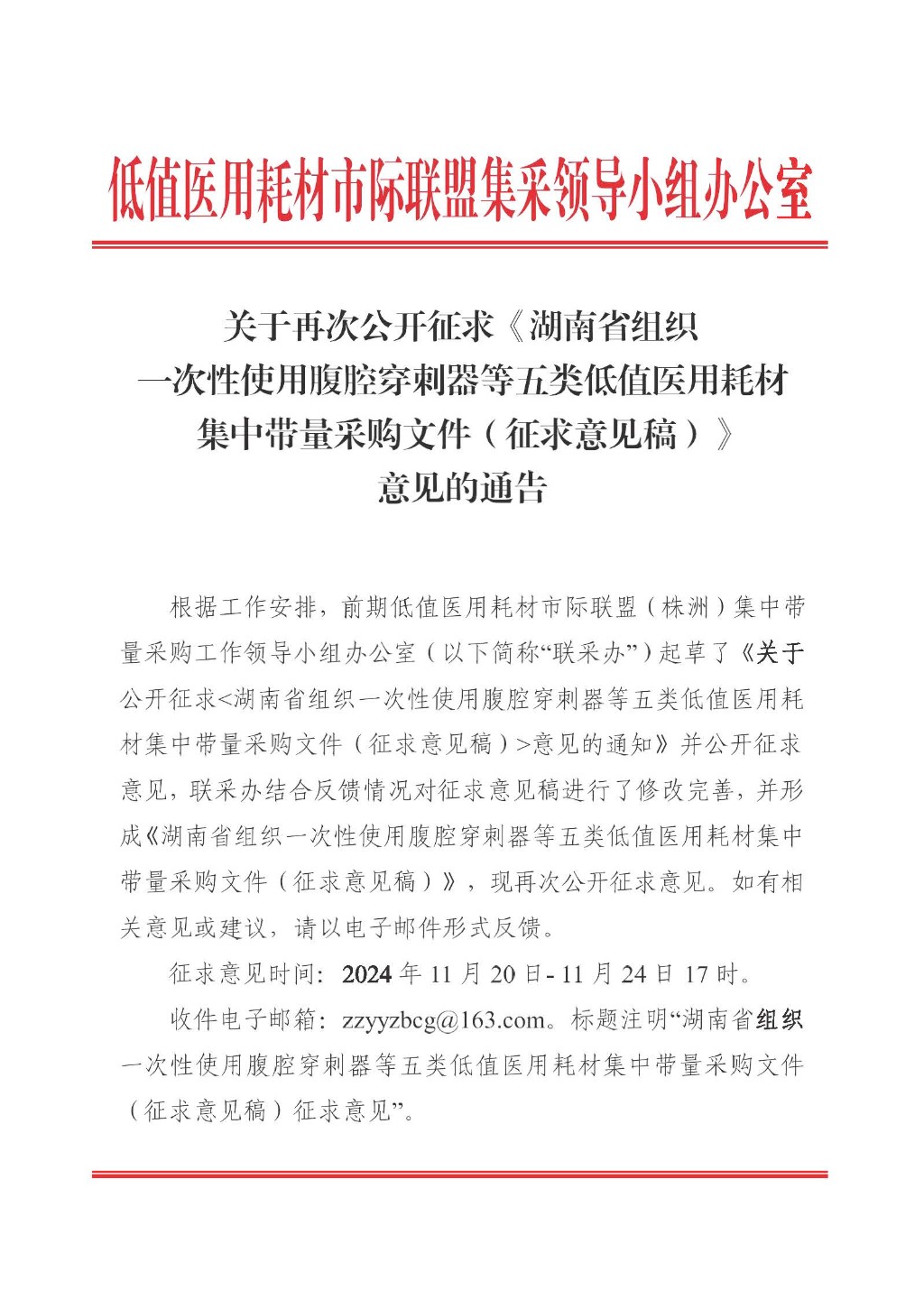 湖南省市際聯(lián)盟(株洲)一次性使用腹腔穿刺器等五類低值醫(yī)用耗材集中帶量采購文件(征求意見稿).pdf