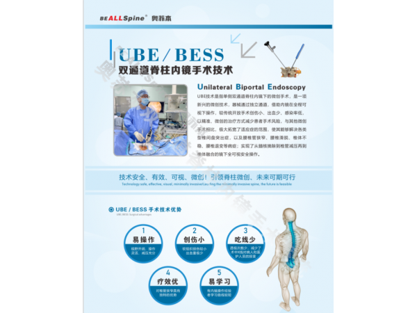 產(chǎn)品說明:什么是UBE技術(shù):UBE/BESS技術(shù)是指單邊雙通道內(nèi)鏡下的全脊柱手術(shù),是一項(xiàng)新興的微創(chuàng)技術(shù),由于是采用兩個通道,所以操作器械不受