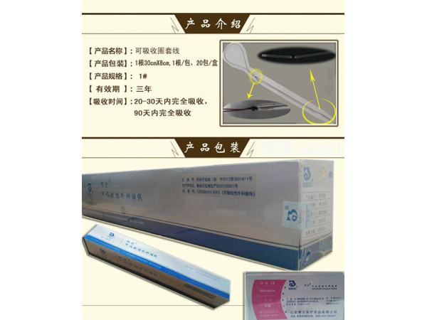 產(chǎn)品說(shuō)明:可吸收性外科縫線(內(nèi)窺鏡圈套線),是我公司于2000年在國(guó)內(nèi)內(nèi)窺鏡手術(shù)權(quán)威及醫(yī)技培訓(xùn)導(dǎo)師劉衍民教師的指導(dǎo)下自主開(kāi)發(fā)研制而成