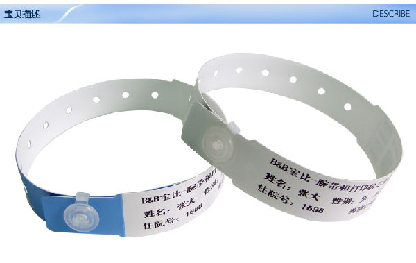 B&B寶比打印腕帶可根據(jù)客戶需求自定義文字,一維碼,二維碼,圖片等打印內(nèi)容,且能在數(shù)秒內(nèi)通過寶比腕帶打印機BB777打印出來。 1. 更清晰地顯示病人信息,避免書寫錯誤或潦草。 2. 能打印高清條形碼和二維碼,是實現(xiàn)移動醫(yī)療的必須條件,提升醫(yī)院信息化管理水平。 3. 熱敏打印更安全,無污染,無墨料殘留。 4. 與醫(yī)院信息系統(tǒng)對接,點擊“腕帶打印“按鈕即能在數(shù)秒內(nèi)通過寶比腕帶打印機BB777打印出來。