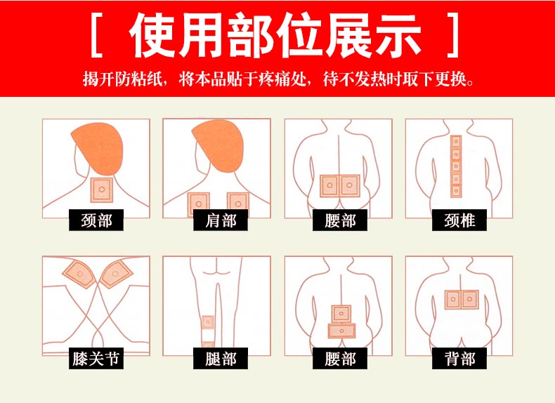 【使用說明】清潔患處,確認包裝無破損后,打開包裝,將貼劑的隔離膜撕去,貼于患處,每24小時更換一次。