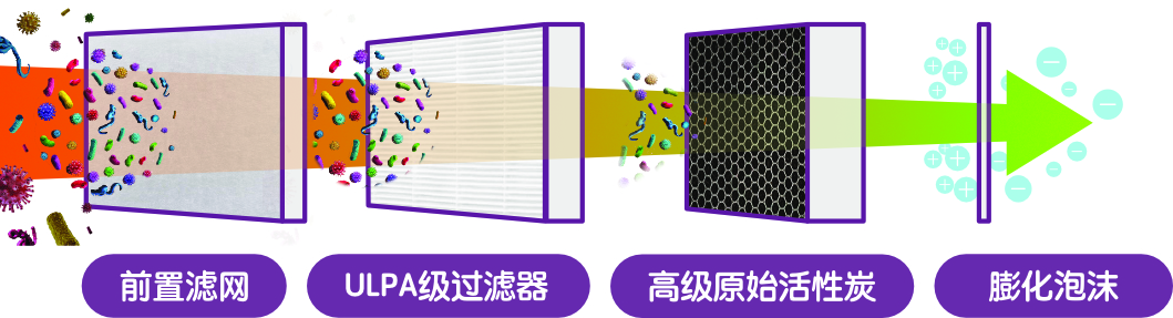 ? 高效HEPA過濾: 采用HEPA,有效率達到99.99%,過濾1微米以上顆粒的煙霧、灰塵以及細菌微生物等污染物