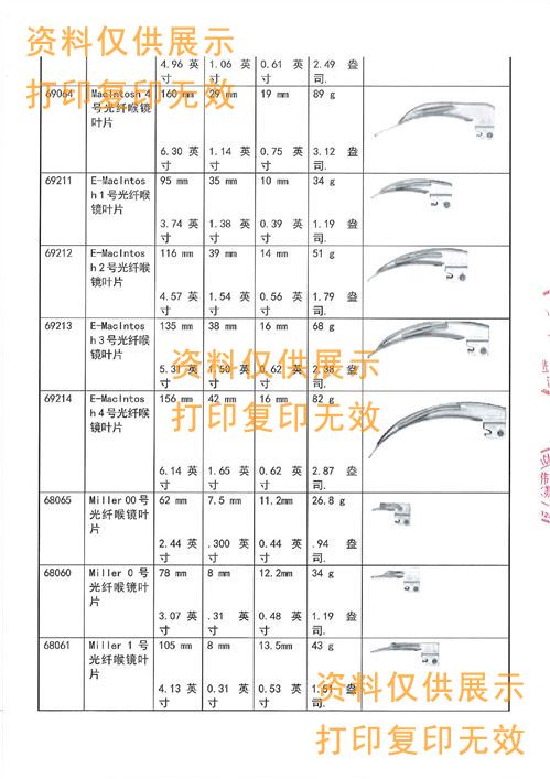 兒童套裝包含:細(xì)手柄60814 1個 光纖壓舌片68065(00號葉片),68060(0號葉片),68061(1號葉片)各一個
