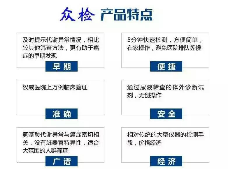 1.【眾檢】化學(xué)名為“對羥基苯丙氨酸(酪氨酸)”尿液檢測試劑,是一款用于檢測早期癌癥的體外尿液檢測試劑。
