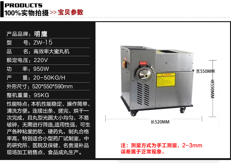3、制丸機體積小、耗能低、噪音小,可做蜜丸。糊丸水丸、濃縮丸、水蜜丸,并可完成拋光、包衣、烘干等功能,性能穩(wěn)定,操作簡單,拆卸清洗方便,同藥物接觸的部分采用了不銹鋼和鋁合金材料。