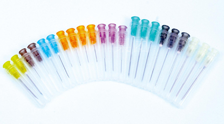 產(chǎn)品采用紙塑包裝,每中盒裝100個(gè)。每箱裝5000個(gè)。規(guī)格為:4.5#-5#-5.5#-6#-16#不等。主要由針座、針尖、針尖保護(hù)套組成。配套一次性注射器使用,為皮下肌肉注射、靜脈注射藥液和抽取血液使用。本品供臨床使用,撕開小包裝,取出注射針,取下保護(hù)套即可使用。