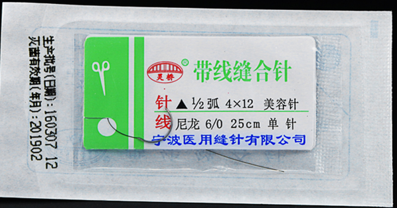 ▲美容縫合線:尼龍線 線長35cm 配的是單角針雙角針用于整形和美容皮膚縫合