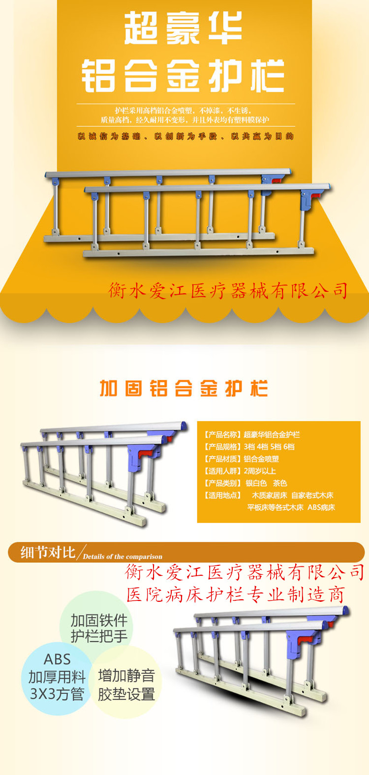 鋁合金護(hù)欄生產(chǎn)廠 代加工 一件代發(fā) 病床護(hù)欄制造商產(chǎn)品說(shuō)明: