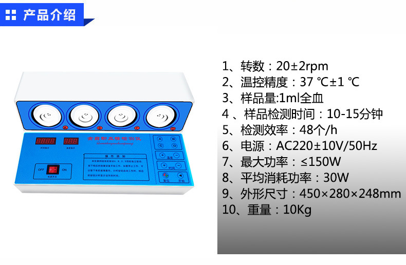 ?二、最新款血栓檢測儀的參數(shù): ①轉(zhuǎn)速: 7±0.5rpm ②溫控精度: 37℃±0.5℃ ③樣品量: 1ml全血 ④樣品檢測時間:10分鐘 ⑤電源: ac220±10v/50hz ⑥最大功率: ≤500w ⑦平均消耗功率:50w ⑧外形尺寸: 440×280×260mm ⑨重量:12kg?