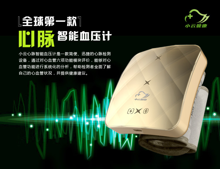 ? ? ? ? 公司研發(fā)的心血管功能檢測(cè)設(shè)備,以“小云健康”平臺(tái)為依托,打造家庭健康管理領(lǐng)域的領(lǐng)導(dǎo)品牌,致力于通過(guò)結(jié)合企業(yè)自身的優(yōu)勢(shì)和資源,幫助大家更方便、更有效地呵護(hù)自己和家人的健康。開(kāi)發(fā)一系列具有自主知識(shí)產(chǎn)權(quán)的穿戴式健康檢測(cè)設(shè)備,同步建設(shè)“小云健康”在線云服務(wù)平臺(tái),為健康人群、亞健康人群、心血管疾病人群提供健康監(jiān)測(cè)、健康分析、健康評(píng)估、健康預(yù)測(cè)等服務(wù),為用戶(hù)進(jìn)行個(gè)性化健康服務(wù)及全生命周期的大數(shù)據(jù)管理,構(gòu)建面向醫(yī)療機(jī)構(gòu)、體檢中心、企業(yè)、居民家庭、第三方相關(guān)健康產(chǎn)品銷(xiāo)售與服務(wù)的生態(tài)圈。