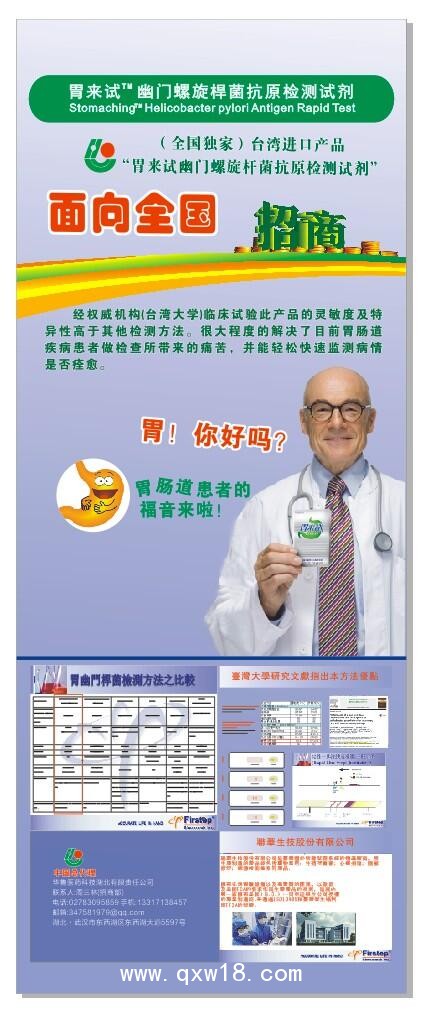 幽門螺旋桿菌抗原診斷試劑(糞便檢測,十分鐘內(nèi)可判讀結(jié)果)與目前臨床應(yīng)用的呼氣法在靈敏度,特異性等有很大的優(yōu)勢,市場前景好,潛力大??蓱?yīng)用消化科,胃腸道,檢驗科,疾控中心,職工體檢項目。