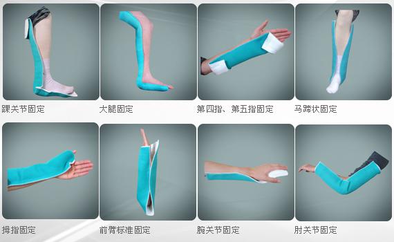2)重量輕:材質(zhì)輕,固定用材少,相當于石膏重量的1/5,厚度的1/3,減輕患處的負荷