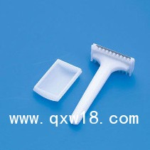 產(chǎn)品結(jié)構(gòu):一次使用備皮刀由刀片、刀架和保護(hù)帽組成。一次性使用備皮刀的刀片采用碳鋼帶鋼材料或不銹鋼帶鋼材料制成,刀架和保護(hù)帽采用醫(yī)用塑料制成。