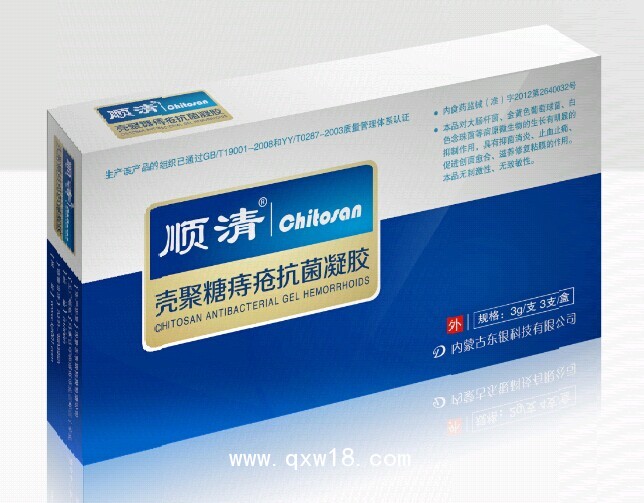 經(jīng)內(nèi)蒙古醫(yī)科大學(xué)附屬醫(yī)院對殼聚糖痔瘡凝膠(商品名:順清)產(chǎn)品的臨床應(yīng)用,結(jié)果表明:殼聚糖痔瘡凝膠針對痔瘡疾病的病理特點(diǎn),成熟運(yùn)用天然生物活性成份為殺菌劑,具有生物活性成份、促進(jìn)細(xì)胞生長、非抗生素類廣譜抗菌、無刺激性和耐藥性的優(yōu)點(diǎn),具有止血止痛,保持創(chuàng)面濕潤,用于各類痔瘡疾病的治療,促進(jìn)創(chuàng)面愈合的作用。