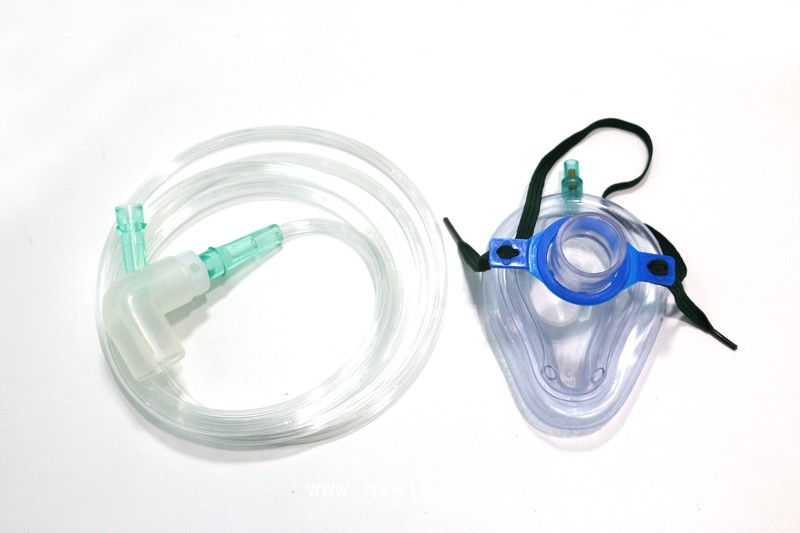 一次性輸氧面罩按配置分為三種型式,A型由面罩墊、輸氧管組成,B1型由面罩、松緊帶、U型(進出氣口)閥體接頭、活瓣、回路管組成,每種分成人(大號)、成人(中號)、兒童號三種規(guī)格。面罩墊、輸氧管采用PVC制成,Y型、U型閥體接頭采用ABS制成,回路管采用乙烯-乙酸乙烯脂共聚樹脂制成。產(chǎn)品應(yīng)無菌。