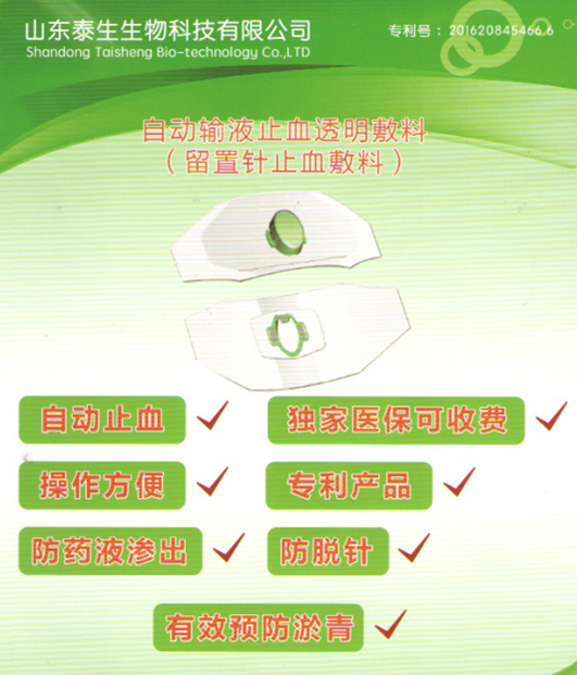 留置針止血敷料山東泰生生物科技產(chǎn)品說(shuō)明: