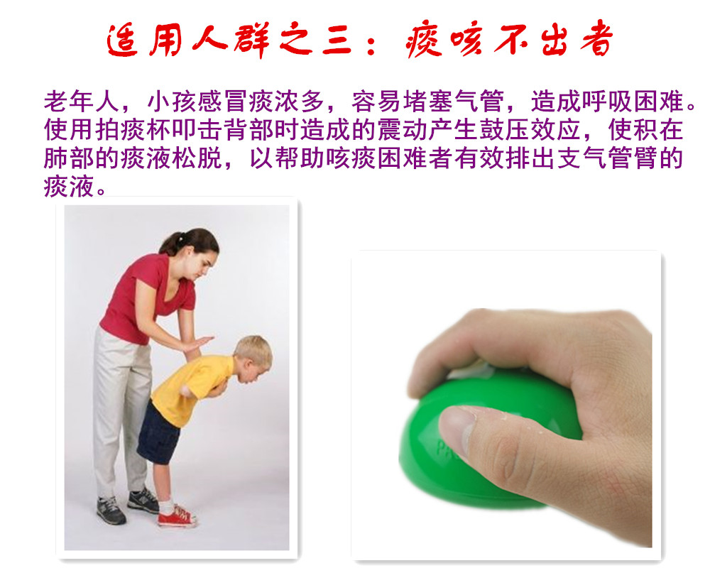 2、胸部外傷、脊柱損傷、肺出血、肺血栓、嚴(yán)重支氣管痙攣等不適合拍痰的情況要嚴(yán)禁使用本產(chǎn)品,盡量遵照醫(yī)囑;
