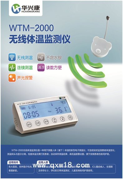 無(wú)線體溫監(jiān)測(cè)儀是具有測(cè)溫和溫度變化實(shí)時(shí)監(jiān)測(cè)的多功能的最新款電子體溫計(jì),它采用獲得國(guó)家專(zhuān)利的傳感技術(shù),實(shí)現(xiàn)測(cè)量結(jié)果的無(wú)線發(fā)射和接收,能快速準(zhǔn)確地測(cè)量人體溫度變化及體溫變化,比起傳統(tǒng)的體溫計(jì),功能更多更強(qiáng)大,具有讀數(shù)方便,測(cè)量時(shí)間短,測(cè)量精度高等特點(diǎn),還有實(shí)時(shí)監(jiān)測(cè)體溫變化,測(cè)量數(shù)據(jù)庫(kù)存,高低溫報(bào)警燈有點(diǎn)。減少了一戶人員工作量,降低因接觸病人而感染病菌的風(fēng)險(xiǎn),方便醫(yī)護(hù)人員對(duì)臨床患者的體溫監(jiān)護(hù)工作,也可以給家庭使用帶來(lái)便利。由于該無(wú)線體溫監(jiān)測(cè)儀不含水銀,對(duì)人體及周?chē)h(huán)境無(wú)害,也與國(guó)際上追求無(wú)汞的行為吻合,適合于醫(yī)院,家庭使用!