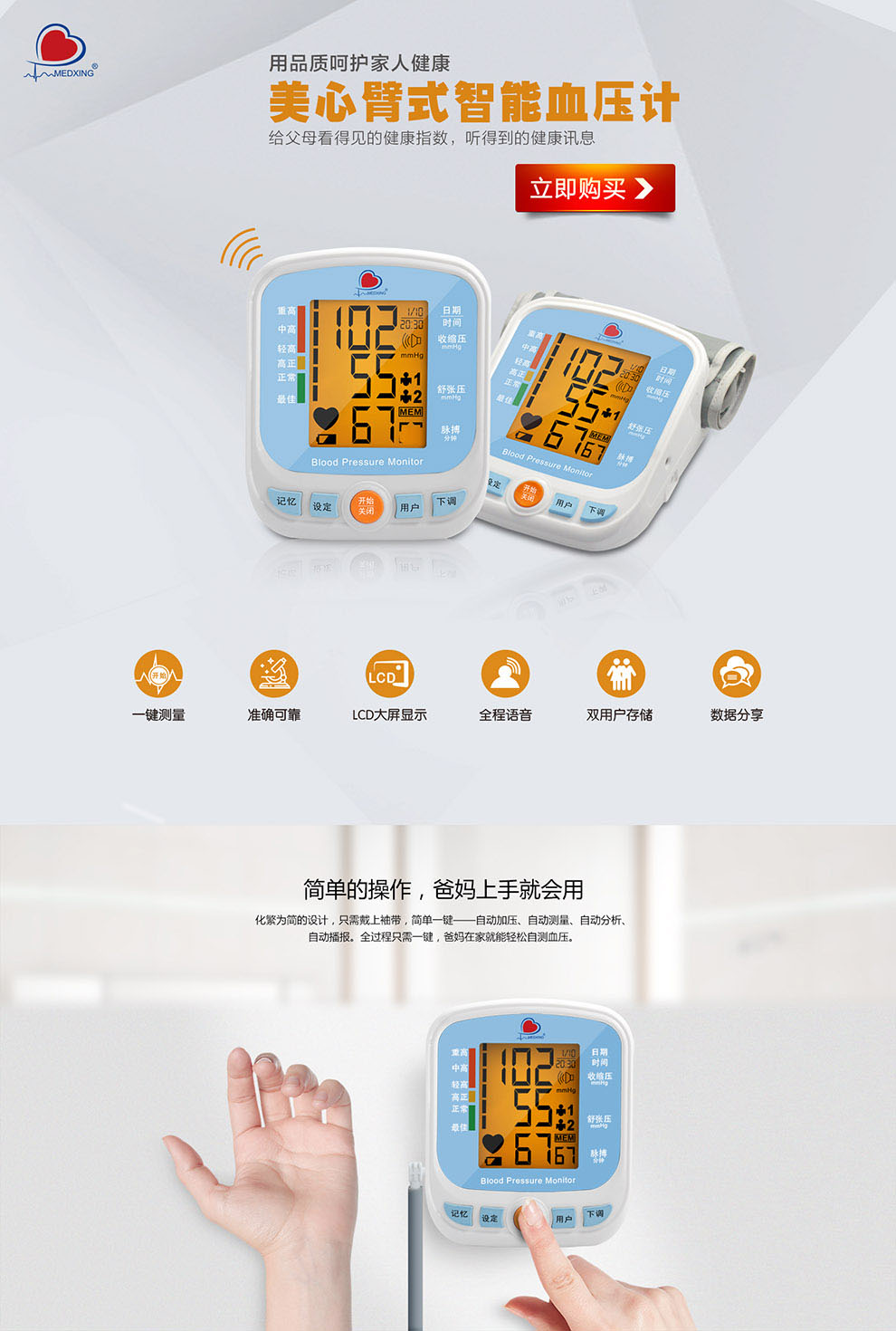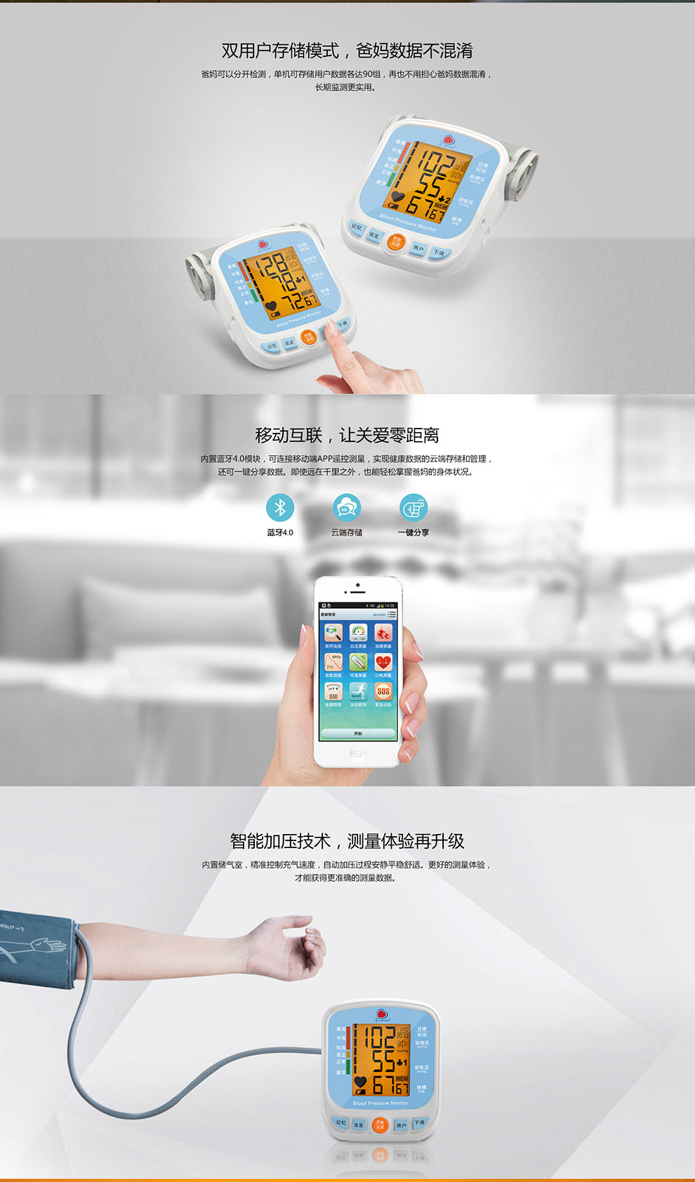ESM201B 家用藍牙連接臂式智能血壓計產品說明: