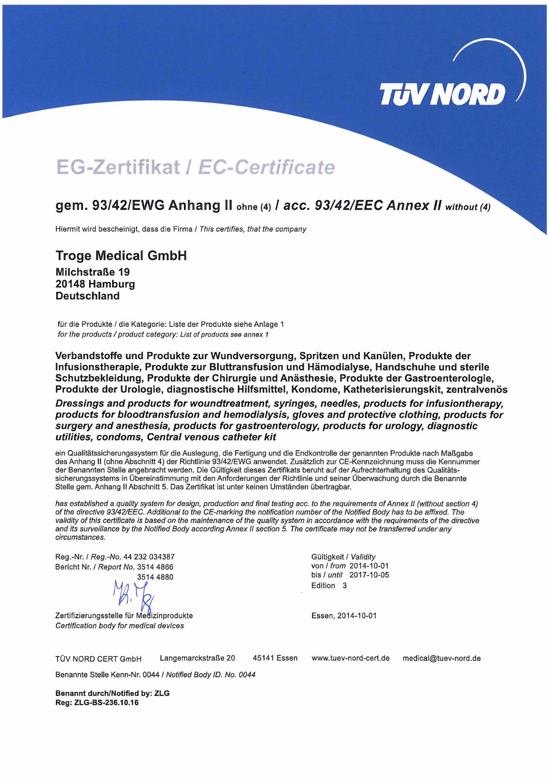 生產(chǎn)企業(yè):TROGE MEDICAL GMBH