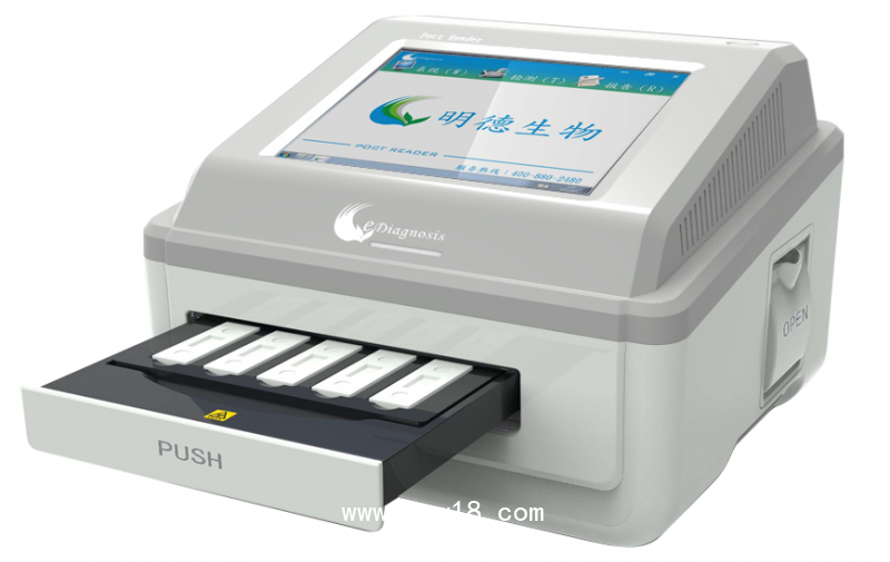 QMT8000免疫定量分析儀配套明德生物所有的專用試劑盒,定量檢測人全血/血清/血漿/尿液中PCT、CRP、PCT-CRP、cTnI、心梗三項(cTnI、CK-MB、Myo)、H-FABP、NT-proBNP、D-Dimer、S100-β、Lp-PLA2、MPO、CysC、NGAL、MAU、HbAlc、C-Peptide、INS、β-HCG、IGFBP-1、PAPP-A、PGI、PGII、HP、AFP、PSA、Fer、BGP、IgE、Lp(a)等20多種標志物的含量,檢測結果用于輔助臨床診斷。