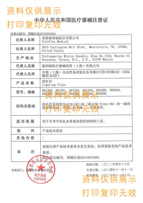 美國(guó)泰利福 Teleflex 鈦夾、結(jié)扎釘001204產(chǎn)品說(shuō)明: