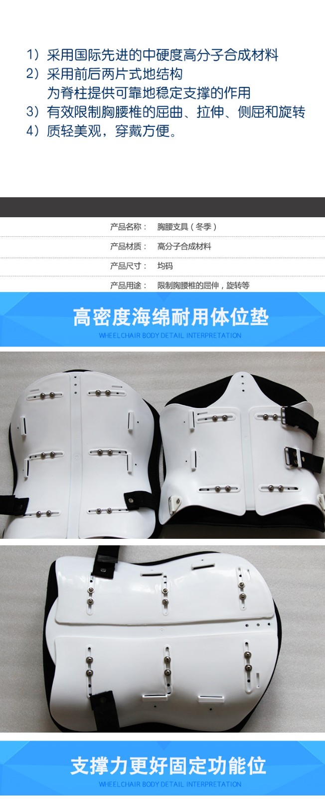 胸腰支具醫(yī)用固定支具支架胸椎矯形器胸腰椎骨折術(shù)后固定支架產(chǎn)品說(shuō)明: