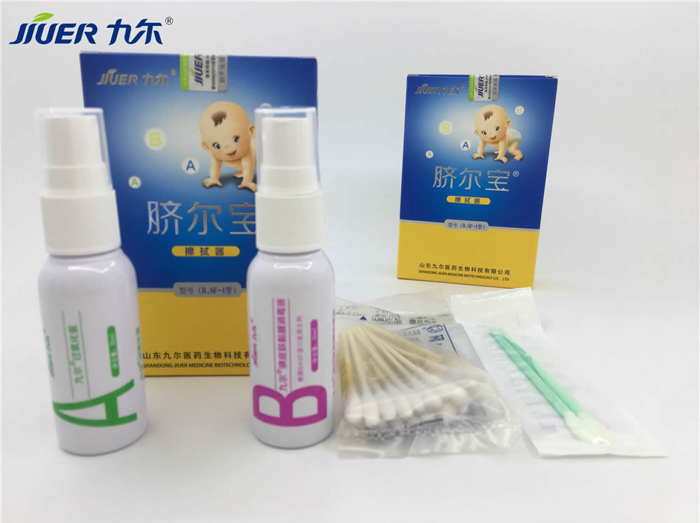 (1)當(dāng)臍帶尚未或部分脫落時(shí),為了避免厭氧菌感染,先用臍爾寶A瓶(過氧化氫),中的溶液噴涂,再用醫(yī)用棉簽由臍部中心向外周部輕輕涂擦,自內(nèi)向外成螺形消毒,直徑約3厘米左右,同時(shí)注意臍輪下緣凹陷部分消毒,臍帶斷端產(chǎn)生泡沫后拭干,然后再用臍爾寶B瓶(聚維酮碘)中的溶液噴涂,2次/天。