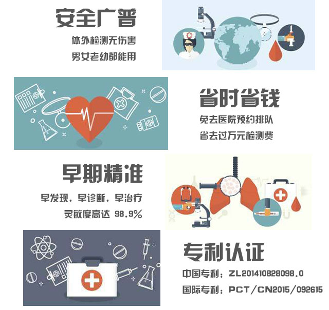 1)?早期精準(zhǔn):在癌癥臨床前期就能檢測(cè)出異常,臨床檢測(cè)證明檢出率高達(dá)98.9%,特異性98.7%;