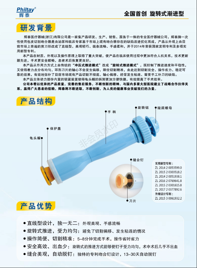 “輝泰”牌 一次性使用 包皮切割吻合器產(chǎn)品說明: