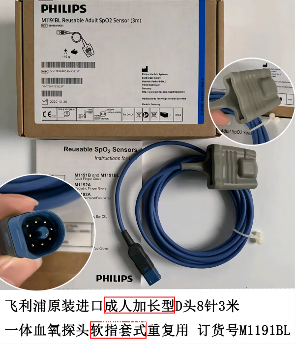 飛利浦全新原裝進口 成人加長型D頭8針 3米 一體血氧探頭 成人指套 重復用 REF:989803144381 訂貨號M1191BL?