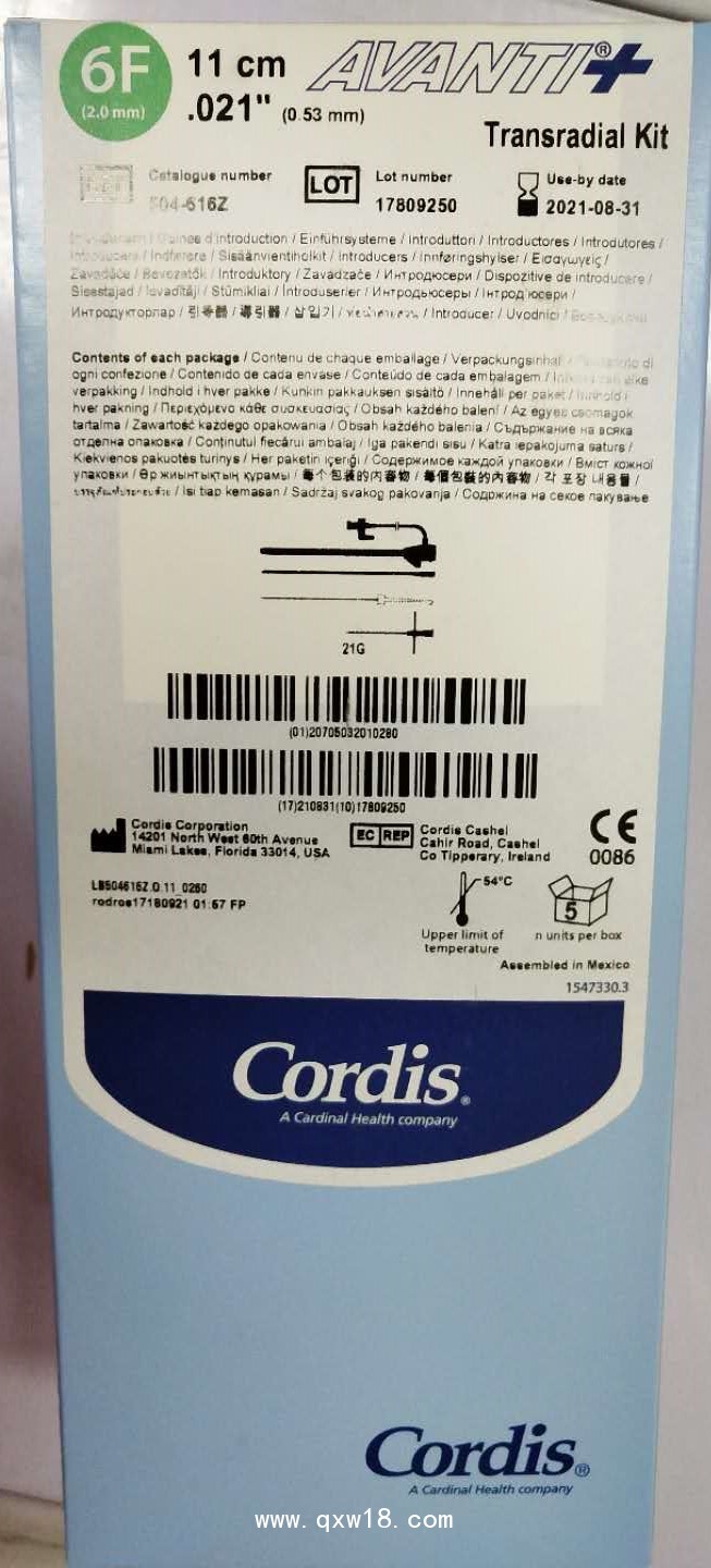 強生Cordis導管鞘及穿刺套件產(chǎn)品說明: