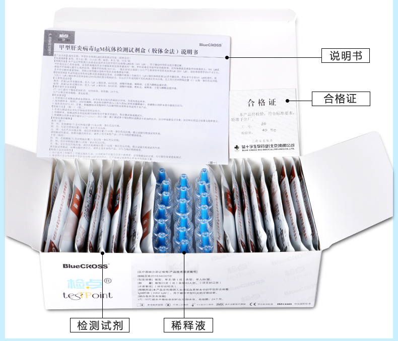 北京藍(lán)十字 HAV甲型肝炎病毒IgM抗體檢測試劑盒產(chǎn)品說明: