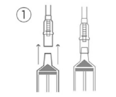 1、打開包裝,用消毒紙巾進(jìn)行消毒后,推出配套注射器里的空氣,把注射器穩(wěn)固地插入理療器的開口端。