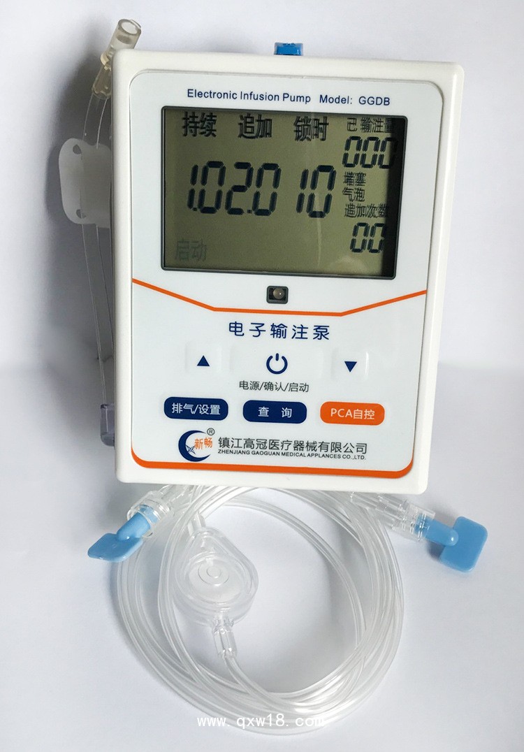 GGDB型一次性使用電子輸注泵,由電子輸注控制系統(tǒng)和儲(chǔ)液輸注系統(tǒng)兩部分組成,運(yùn)用高性能單片機(jī)及經(jīng)典控制電路控制輸液流量,流量精確,操作方便。藥盒為一次性使用,電子控制可連續(xù)輸注2000ml。醫(yī)護(hù)人員可按需調(diào)整輸液參數(shù),病人也可按需進(jìn)行自控輸注治療,使之更適合患者止痛治療的個(gè)體化要求。