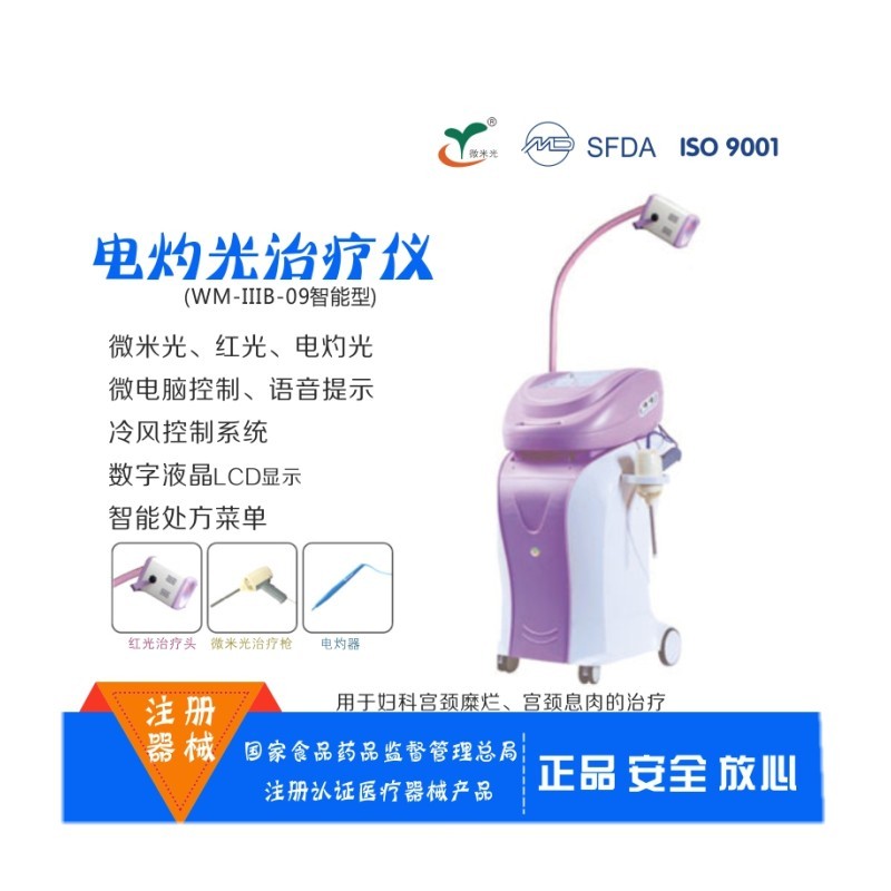 工作原理:根據(jù)人體正常組織與病變組織對特定皮長的光能量照射具有選擇性吸收的特性,通過光熱復(fù)合效應(yīng)有效殺死病變細(xì)胞組織,可在短時(shí)間內(nèi)使粘膜組織凝固,促使新的鱗狀上皮細(xì)胞生成,恢復(fù)創(chuàng)面。并可使局部血管擴(kuò)張,血流加快,改善局部血液循環(huán),加速代謝吸收,促進(jìn)炎癥消散,使細(xì)胞再生和修復(fù)過程加快。