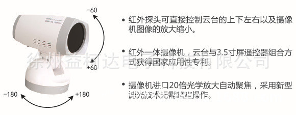 2.紅外探頭可以控制攝像機圖像放大、縮小、控制云臺上下左右、以及圖像采集功能