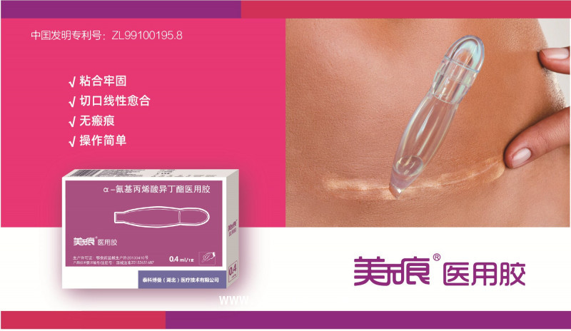 醫(yī)用膠粘合力強,能對創(chuàng)面進行固定,減小切口張力,從而起到減少疤痕的作用。
