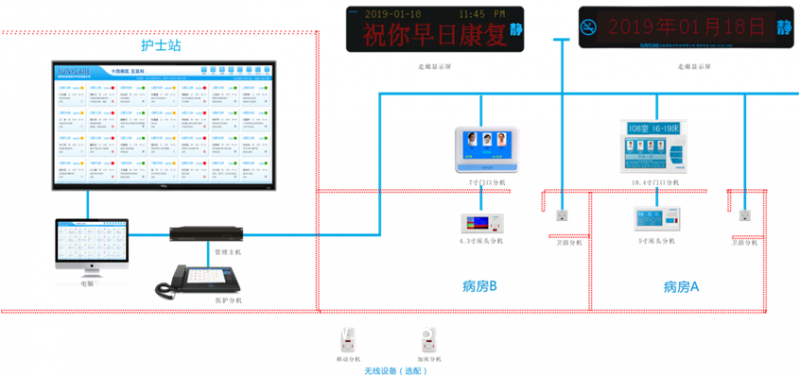 | 總線制病房護(hù)理系統(tǒng)?數(shù)字化信息傳呼對講廠家醫(yī)用智能傳呼系統(tǒng)方便醫(yī)院住院病友在病室里與護(hù)士辦公室內(nèi)醫(yī)護(hù)人員的聯(lián)系。 |