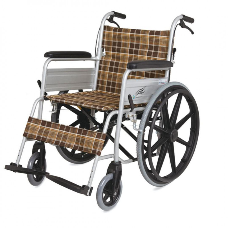 輪椅車整體由壁厚2.0鋁合金管車架、牛津布軟靠背和坐墊、腳踏、前后輪等組成,堅(jiān)固耐用、承重性強(qiáng)、可折疊、攜帶方便。