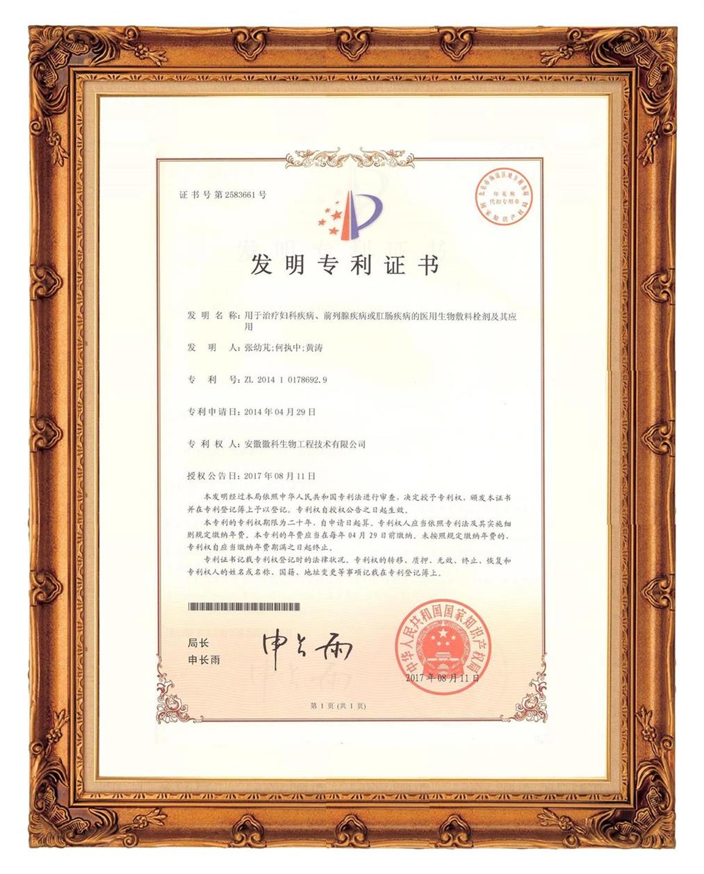 散嚴(yán)寧醫(yī)用生物敷料栓?????20年發(fā)明專利保護(hù)品種