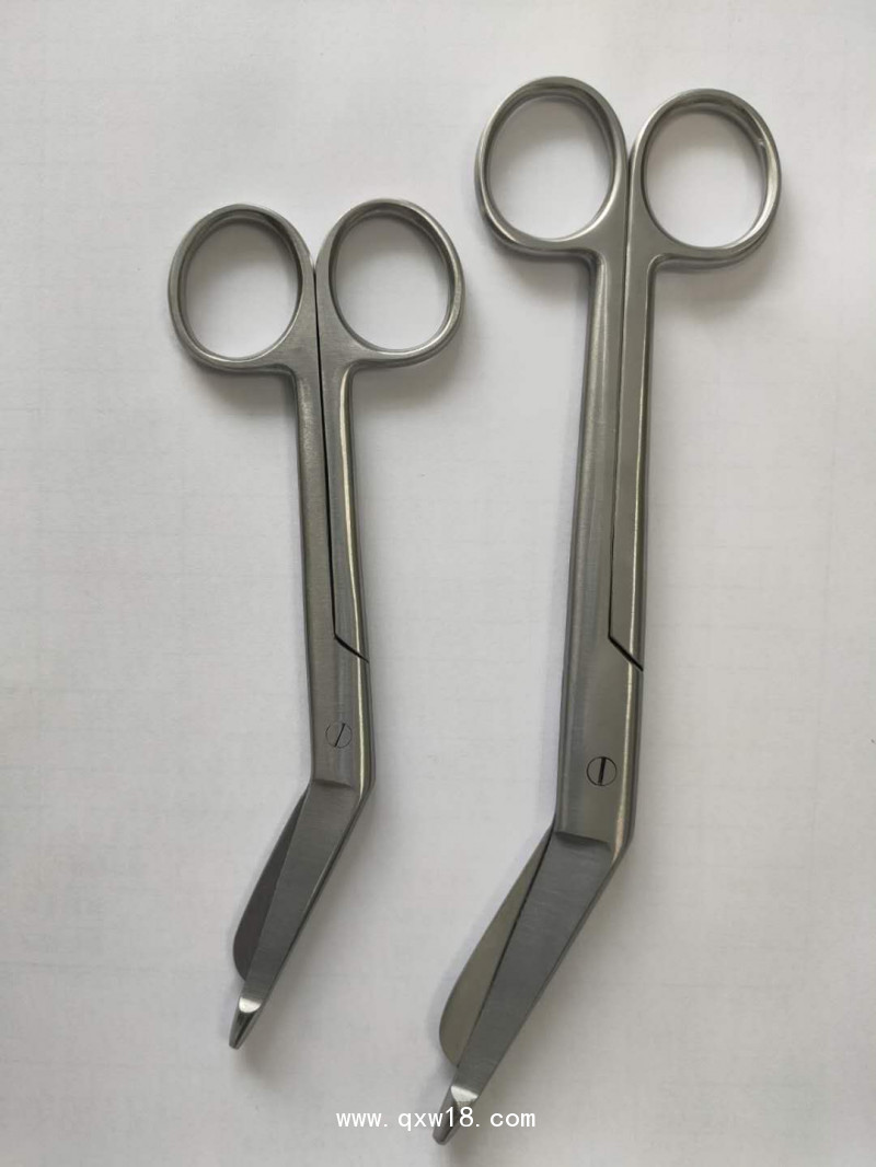 紗布繃帶剪,一片帶有三角形的保護(hù)頭,供外科剪切紗布繃帶及石膏襯墊。