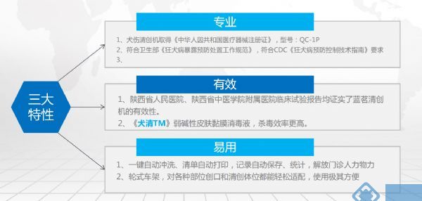 QC-1P犬傷清創(chuàng)機(jī):醫(yī)用創(chuàng)口沖洗機(jī)采用脈動(dòng)壓力技術(shù),使用特制刀頭,采用無(wú)菌包裝的-犬清TM-弱堿性皮膚黏膜消毒液,通過(guò)自動(dòng)化控制程序全自動(dòng)完成高標(biāo)準(zhǔn)的犬傷沖洗處置。藍(lán)茗醫(yī)療QC-1P犬傷清創(chuàng)機(jī)科學(xué)的處置能有效減低傷患創(chuàng)口病毒數(shù)量,極大提升狂犬病預(yù)防有效性;以完全符合國(guó)家規(guī)定的處置程序有效保障犬傷門診的權(quán)益,規(guī)避醫(yī)療風(fēng)險(xiǎn),避免醫(yī)療糾紛;專業(yè)的沖洗清創(chuàng)設(shè)備可顯著降低對(duì)門診處置水平要求,減輕處置人員的工作負(fù)擔(dān)。