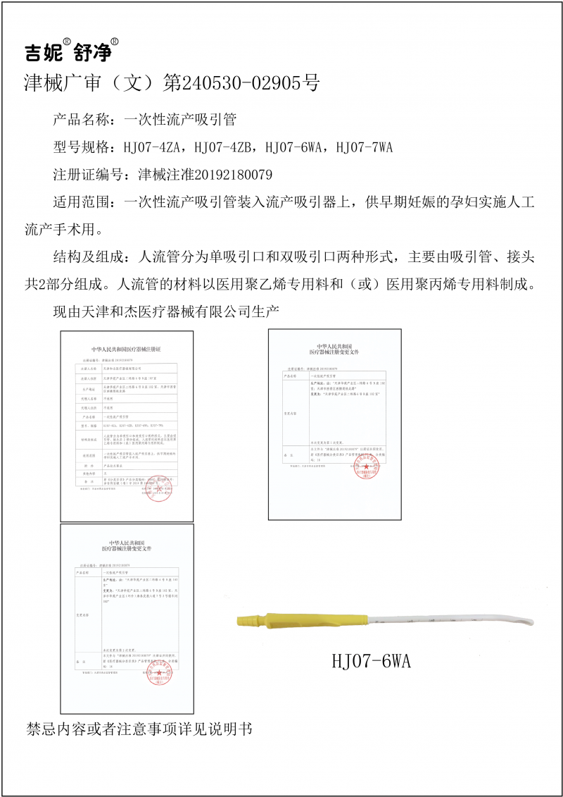 天津和杰一次性流產吸引管產品說明: